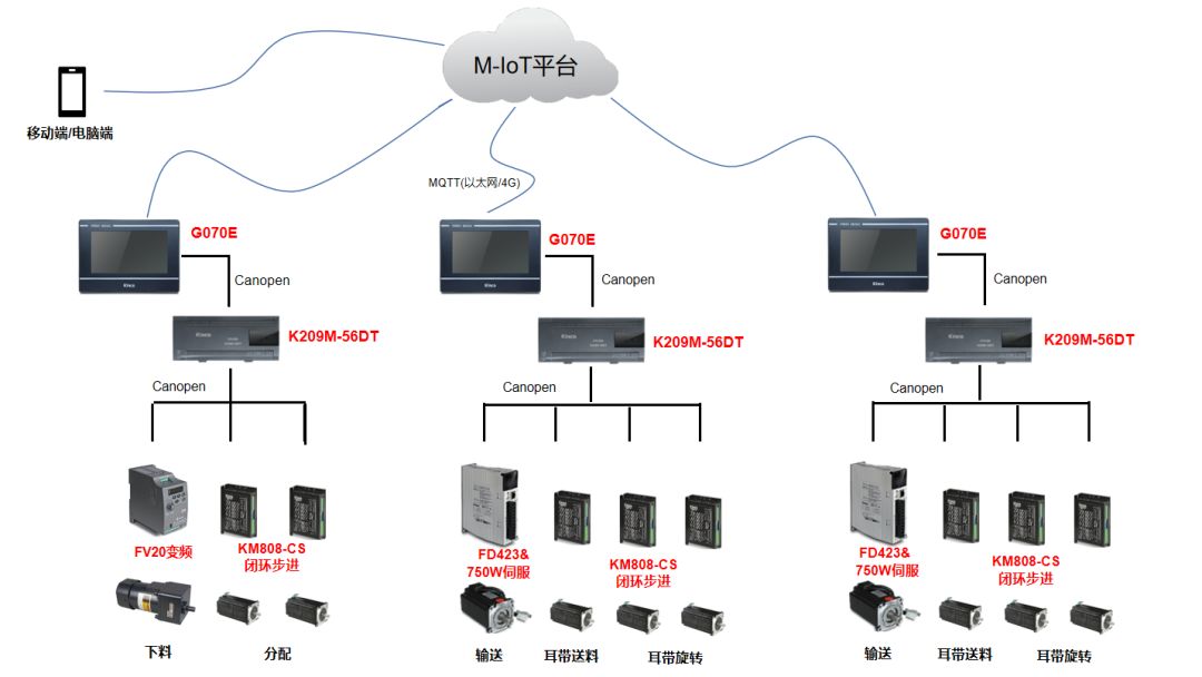 步科口罩機Plus方案,在CANopen總線伺服驅動產品基礎上,迅速升級M-IoT物聯網遠程運維服務,快速完善了設備報警和維護信息,增加了遠程診斷服務功能,進一步打通了現場、設備商和部件商的溝通渠道,幫助現場人員快速排查故障。