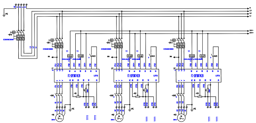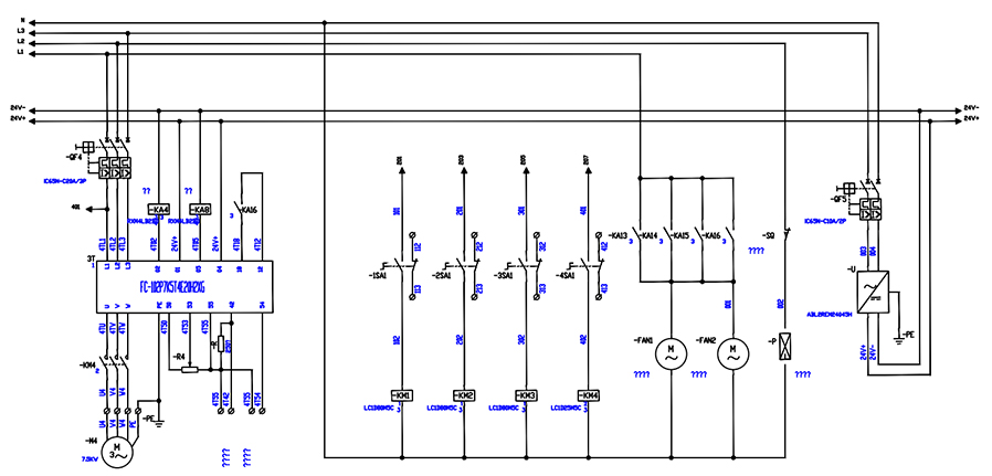 該空調系統有水泵6臺(冷卻水泵30KW為兩用一備、冷凍水泵30KW為兩用一備),及冷卻塔風機2臺(功率4KW),在每一樓層配置1-3臺11KW風機(共計24臺)進行送風,目前均以工頻方式運行。