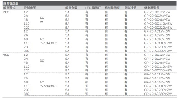 GR-ZW系列中間繼電器 產品特點
