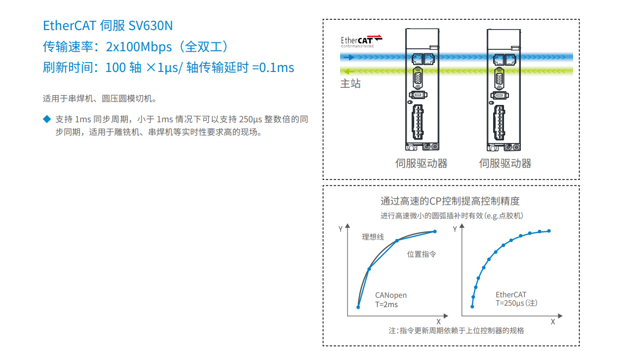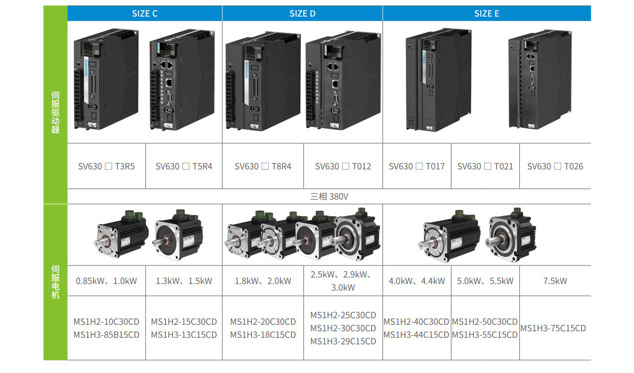 SV630 系列伺服是匯川技術研制的高性能中小功率的交流伺服產品。該系列產品功率范圍為0.05kW ~ 7.5 kW,采用以太網通訊接口,支持EtherCAT 、Modbus、CANopen 和CANLink 等通信協議,采用對應的通信接口,配合上位機可實現多臺伺服驅動器聯網運行。